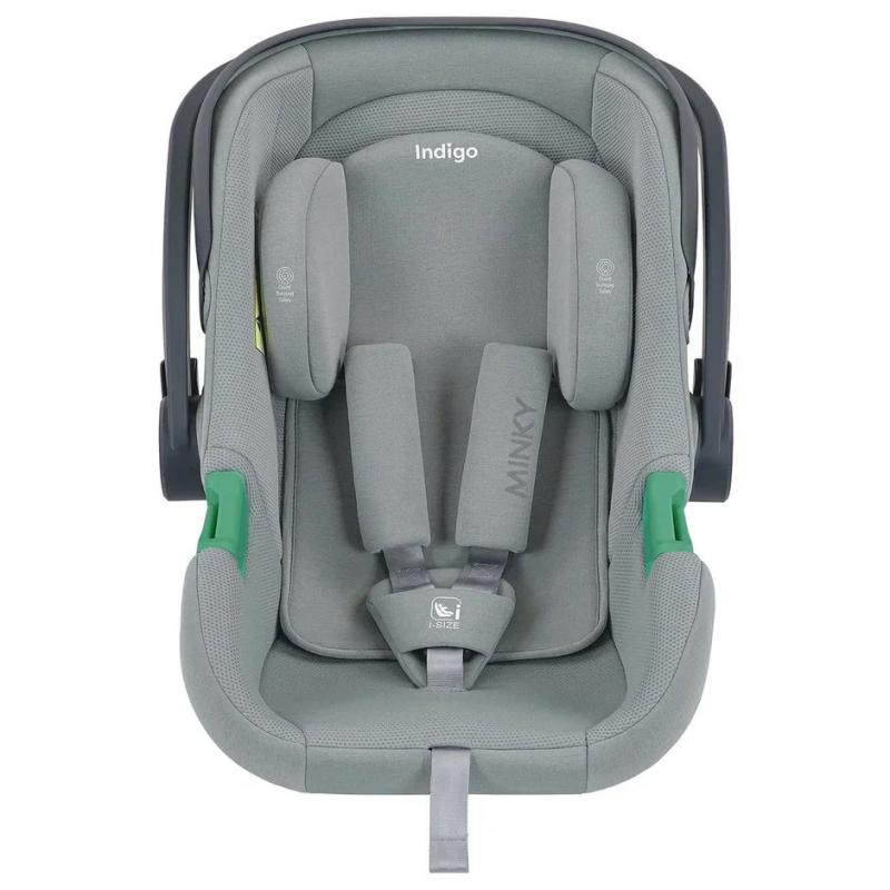 Автокресло MINKY I-SIZE от бренда Indigo — это безопасное и удобное решение для перевозки малышей с рождения до 15 месяцев (до 13 кг, рост 40–87 см).
