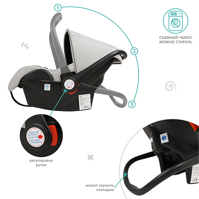 Благодаря регулируемой ручке автокресло может использоваться в качестве люльки-переноски.