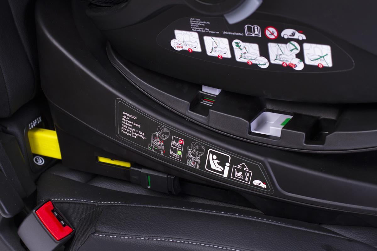 Фиксация в автомобиле с помощью Isofix.и опорной ноги в пол.