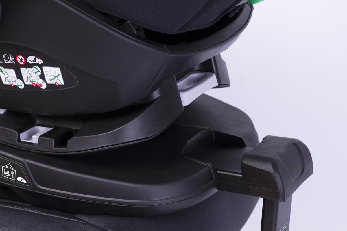 Крепление Isofix регулируется по длине, для удобной и более плотной установки к сидению автомобиля. Опорная нога с телескопическим механизмом настраивается по высоте.