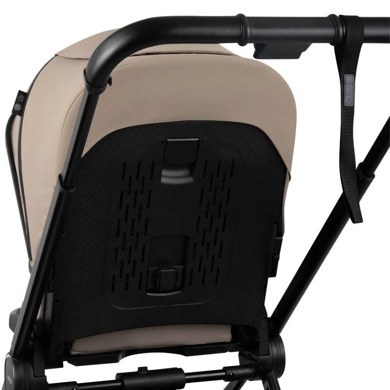 Все модули устанавливаются на раму с помощью удобных переходников с эффектом памяти, а телескопическая ручка регулируется по высоте в пяти положениях, обеспечивая комфорт обоим родителям, подстраиваясь под их рост.
