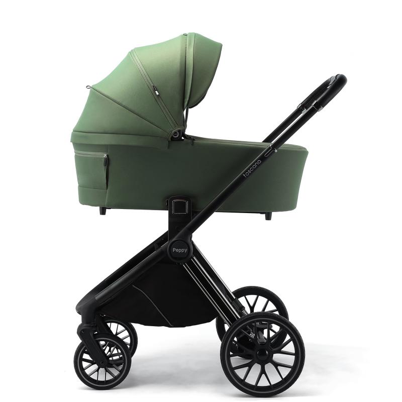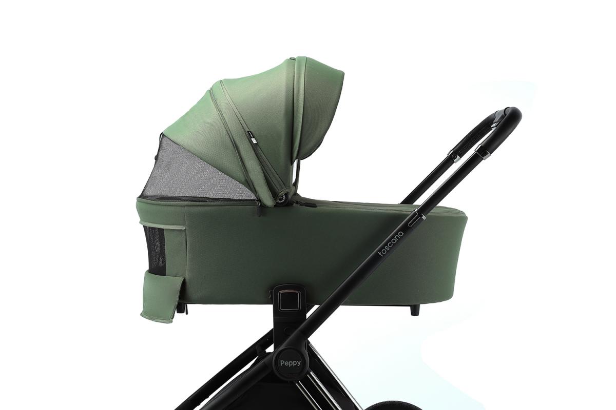 PeppyToscana 2 в 1 – элегантная городская коляска для активного образа жизни. Модель отличается высокой проходимостью благодаря большим колесам и мягкой амортизации с регулировкой жесткости. Она компактно складывается с прогулочным блоком, и мало весит.