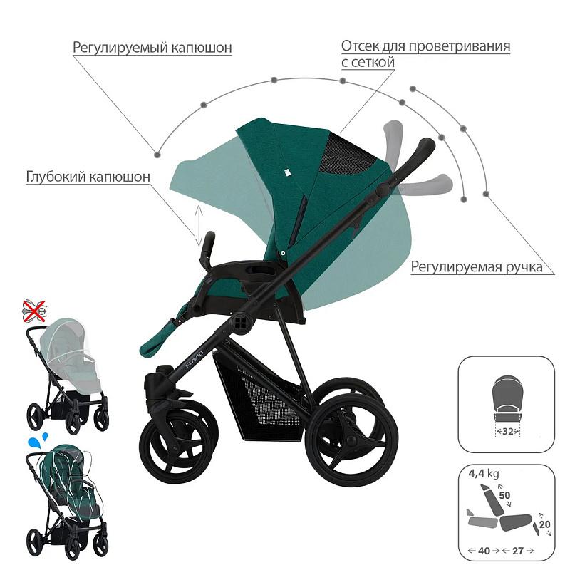 - Обивка коляски: водоотталкивающая, съемная, с УФ-защитой 50+.