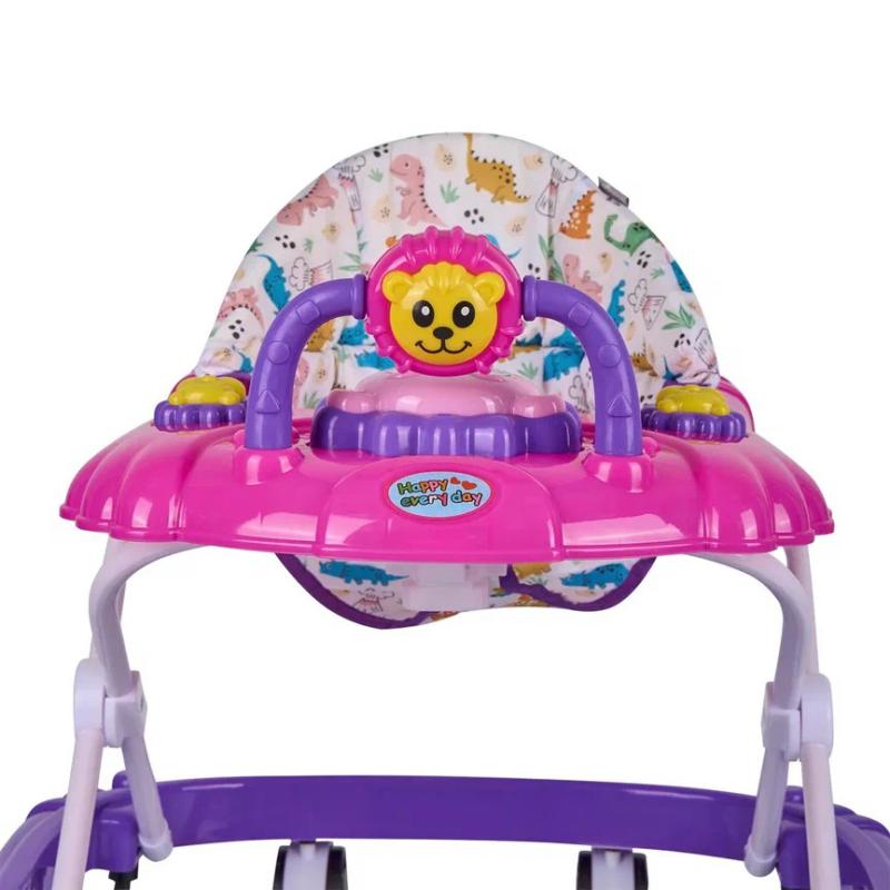 • розовый-фиолетовый - Ходунки Indigo "Львенок" 8 колес, муз, стопоры