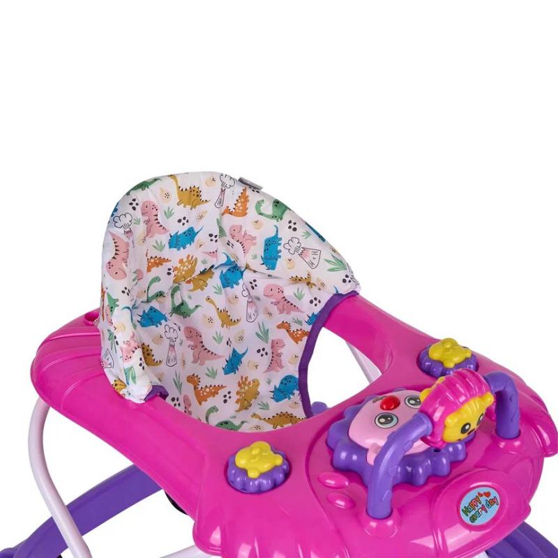 Игровая панель с крутящимися элементами и музыкальным сопровождением делает первые шаги ребёнка увлекательными и интересными. Регулируемое по высоте сиденье с тремя возможными положениями позволяет использовать модель по мере роста малыша.
