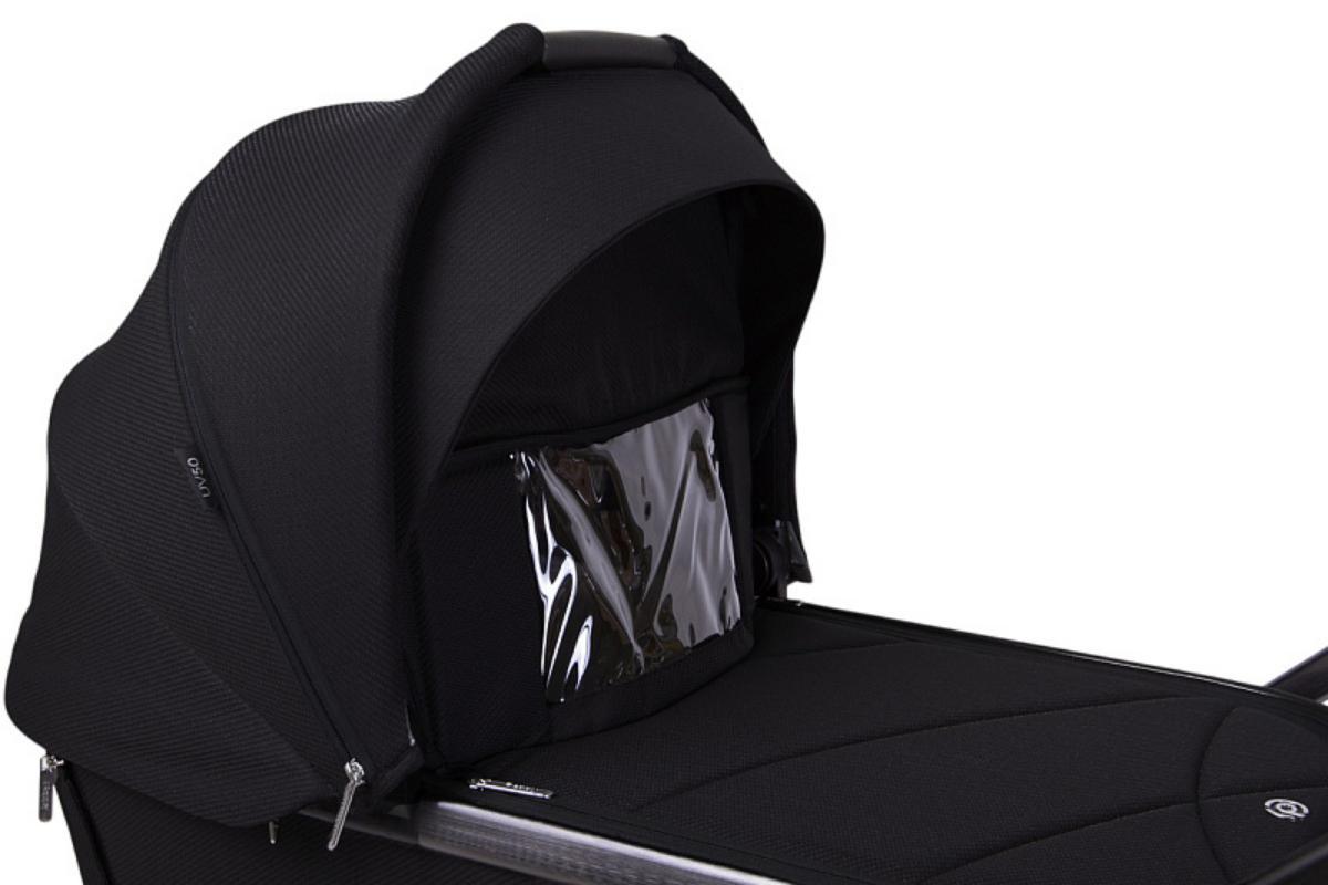 - Для лучшей циркуляции воздуха в жаркие летние дни в капоре люльки и у изголовья есть москитная сетка, спрятанная под молнией
