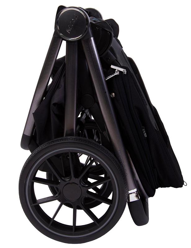 - Легкая алюминиевая рама с поворотными передними колесами делают коляску максимально маневренной.