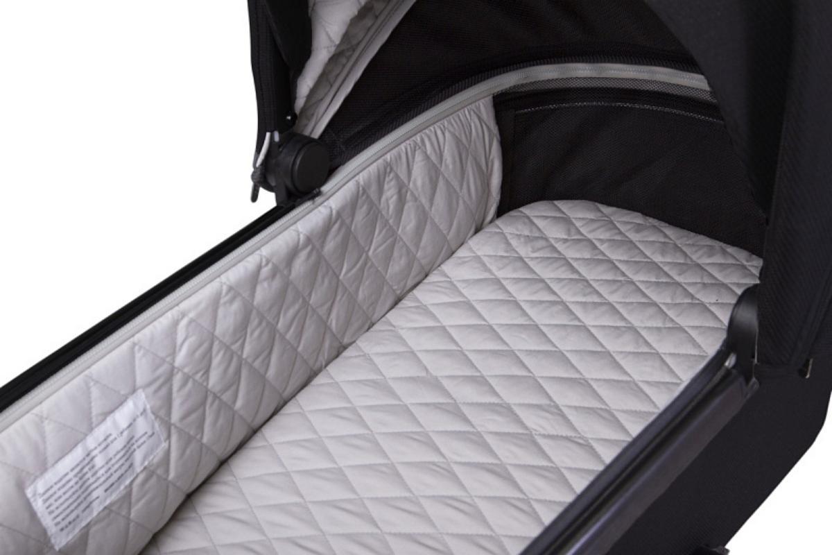 - Простая установка люльки на шасси - широкие адаптеры легко и плавно фиксируются на раме. А для снятия её достаточно нажать одну кнопку с эффектом памяти и потянуть ручку вверх.