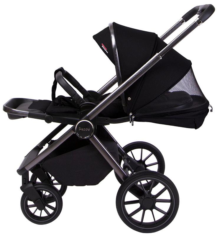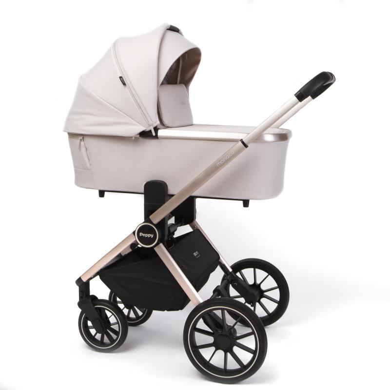- Шасси коляски Peppy Monaco 3 в 1 узкое – всего 58 см! Поэтому она пройдёт в любой дверной проём или лифт