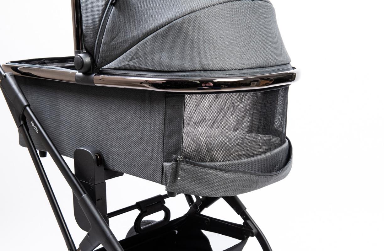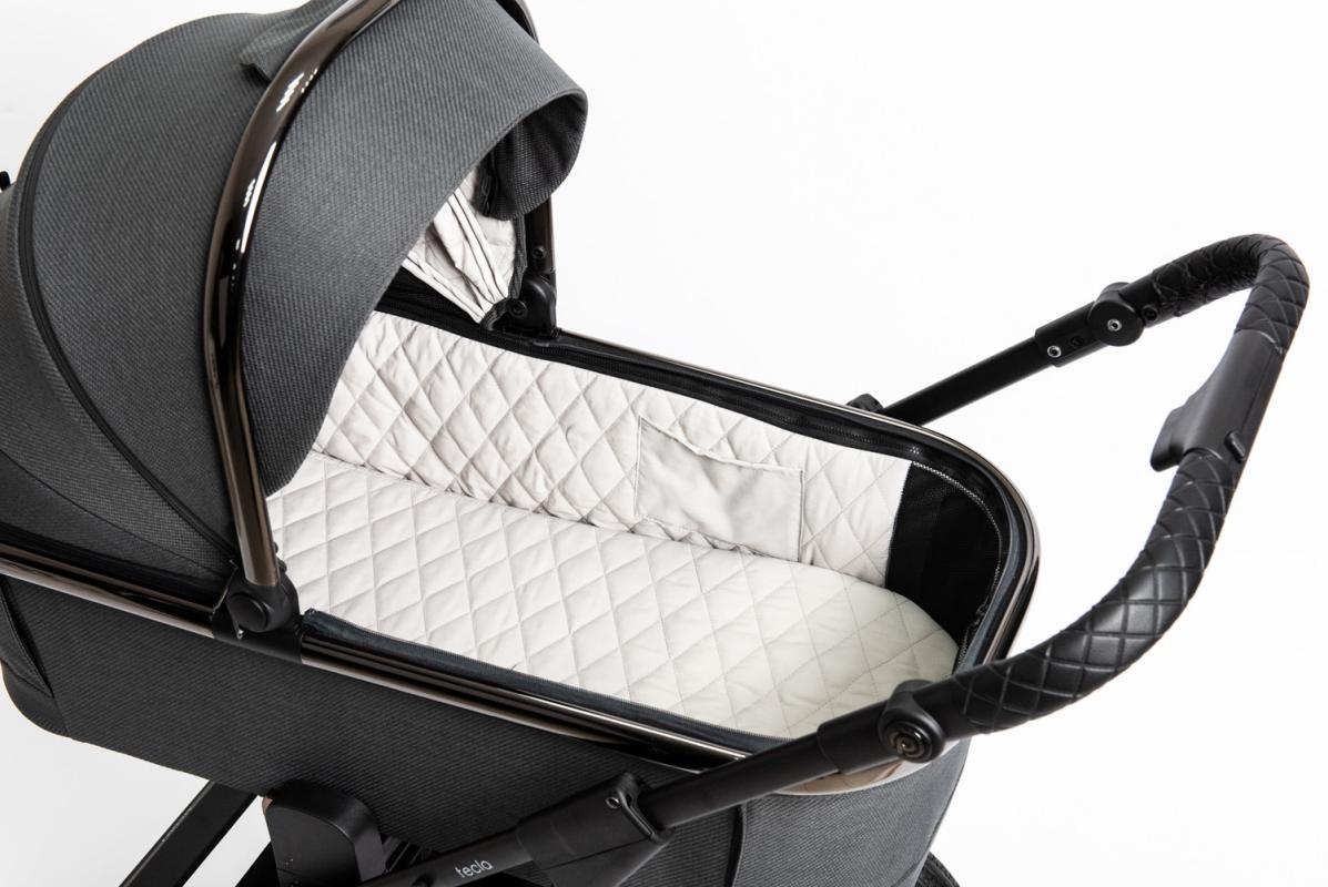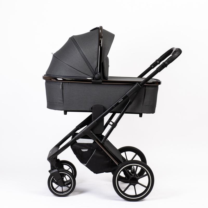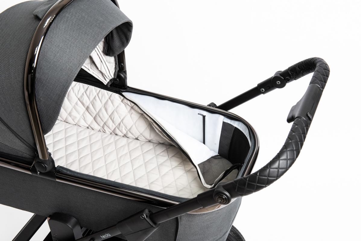 Tecla выполнена в лаконичном дизайне, который гармонично сочетает в себе премиальный облик и функциональность. Материалы люльки и прогулочного блока выполнены из ткани с защитой UV 50+.