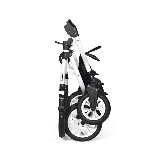 У коляски надежная и прочная рама с удобным сложением книжкой. Все колеса надувные с пружинными амортизаторами. Для легкого управления транспортом предусмотрены передние поворотные колеса, но на неровной дороге их можно легко зафиксировать в положение только "прямо".
