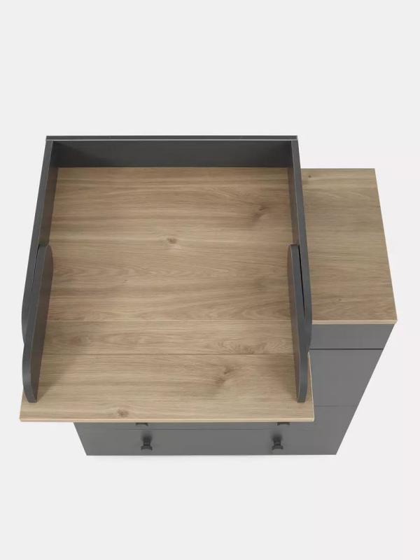 - комод дополнен складным/съемным бортиком, превращающим его в полноценный пеленальный столик. Бортик можно установить в двух положениях - слева и справа. Также бортик можно сложить, убрав излишнюю длину.