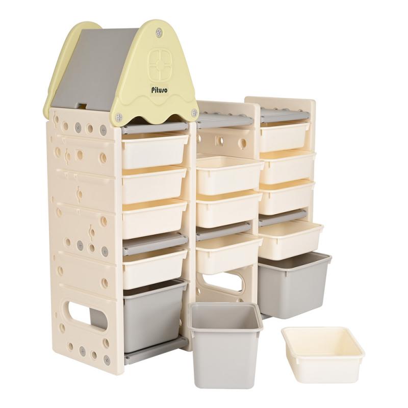 Стеллаж имеет необычный дизайн, что привлечет ребенка к самостоятельной уборке своих вещей.
