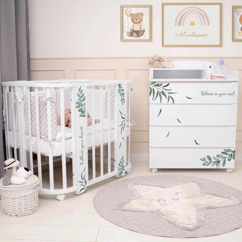 Кровать детская "Crystal Star" 5в1 с поперечным маятником (круг/овал, манеж, 2 кресла, стол)