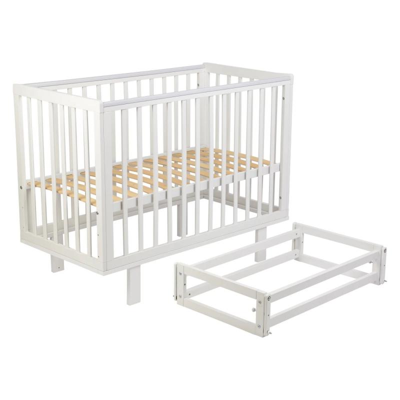 - Универсальность использования: кроватка, приставная кроватка и диванчик.