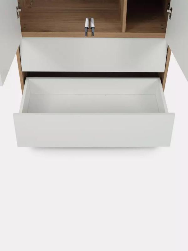 - фасадные дверцы дополнены скрытой системой открывания push-to-open (tip-on). Чтобы открыть шкаф, достаточно легкого нажатия.