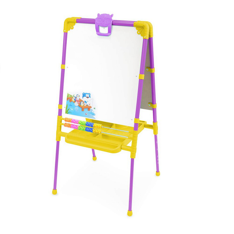 • сиреневый - Мольберт для детей  двусторонний с бол.пеналом, счетами, регулир.высоты (арт. М2)