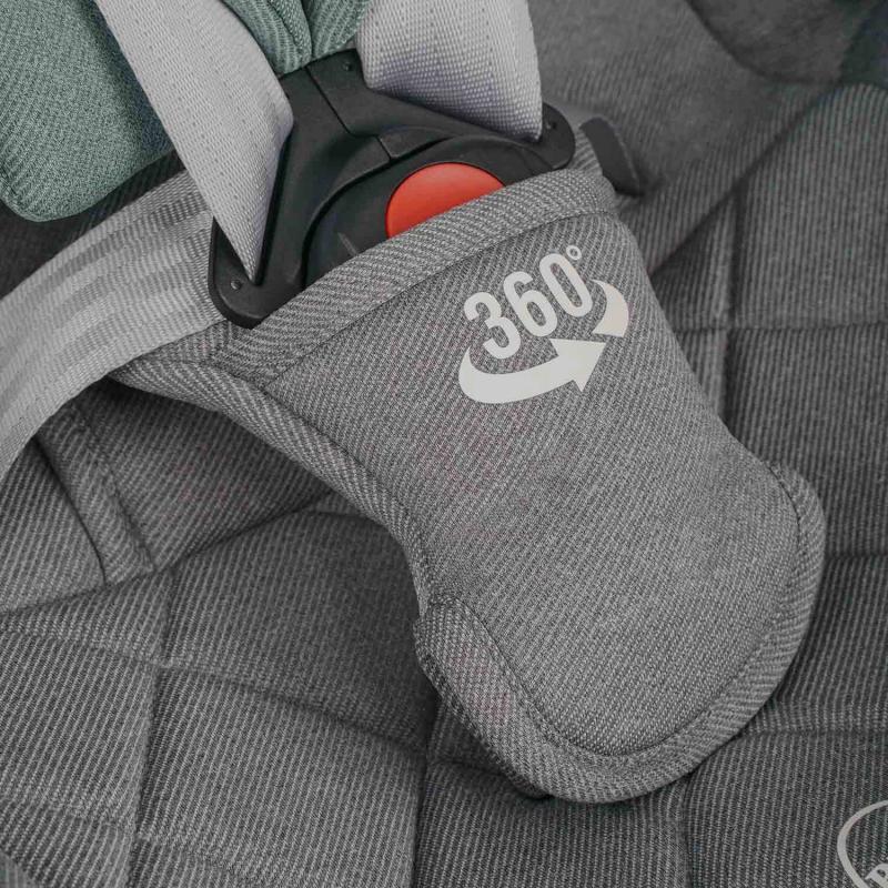 - Поворот на 360° с фиксацией на 90° — удобно для посадки и высадки ребенка.