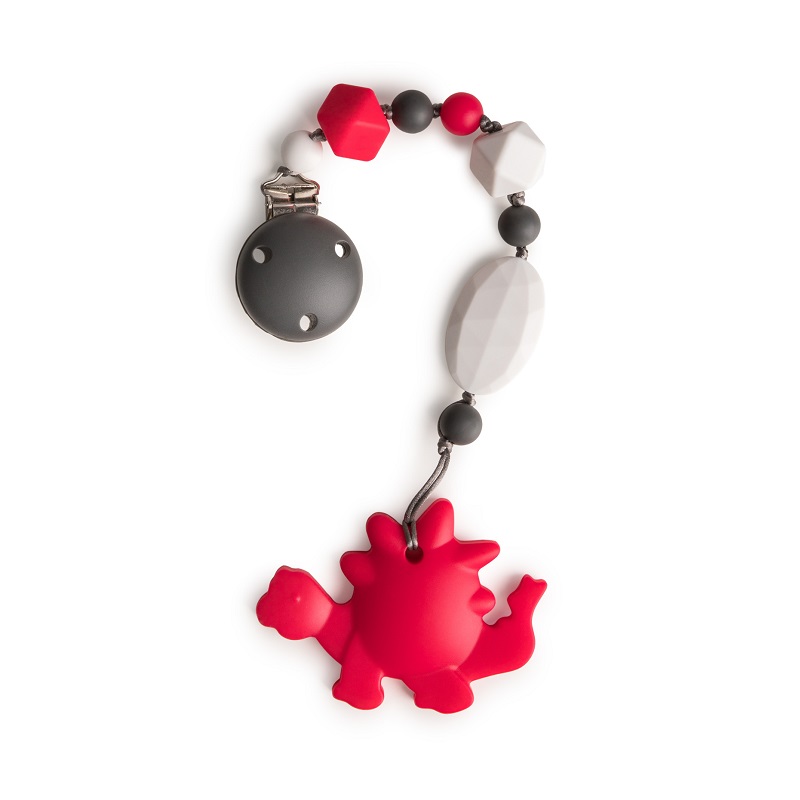 Держатель крепится к одежде малыша, кроватке или коляске. Яркая окраска прорезывателя познакомит ребёнка с цветами окружающего мира.