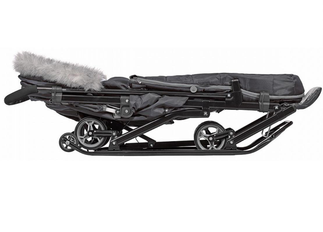 Широкие устойчивые полозья и выдвижные колеса обеспечат максимальную проходимость по асфальту и высоким рыхлым сугробам.