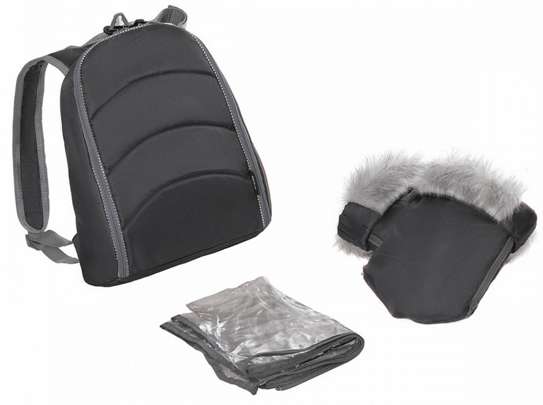 Модель получила новый крой чехла для ног со стежкой и окантовкой мехом, а также современный рюкзачок для необходимых вещей и мелочей на прогулке, который можно использовать как отдельный аксессуар.